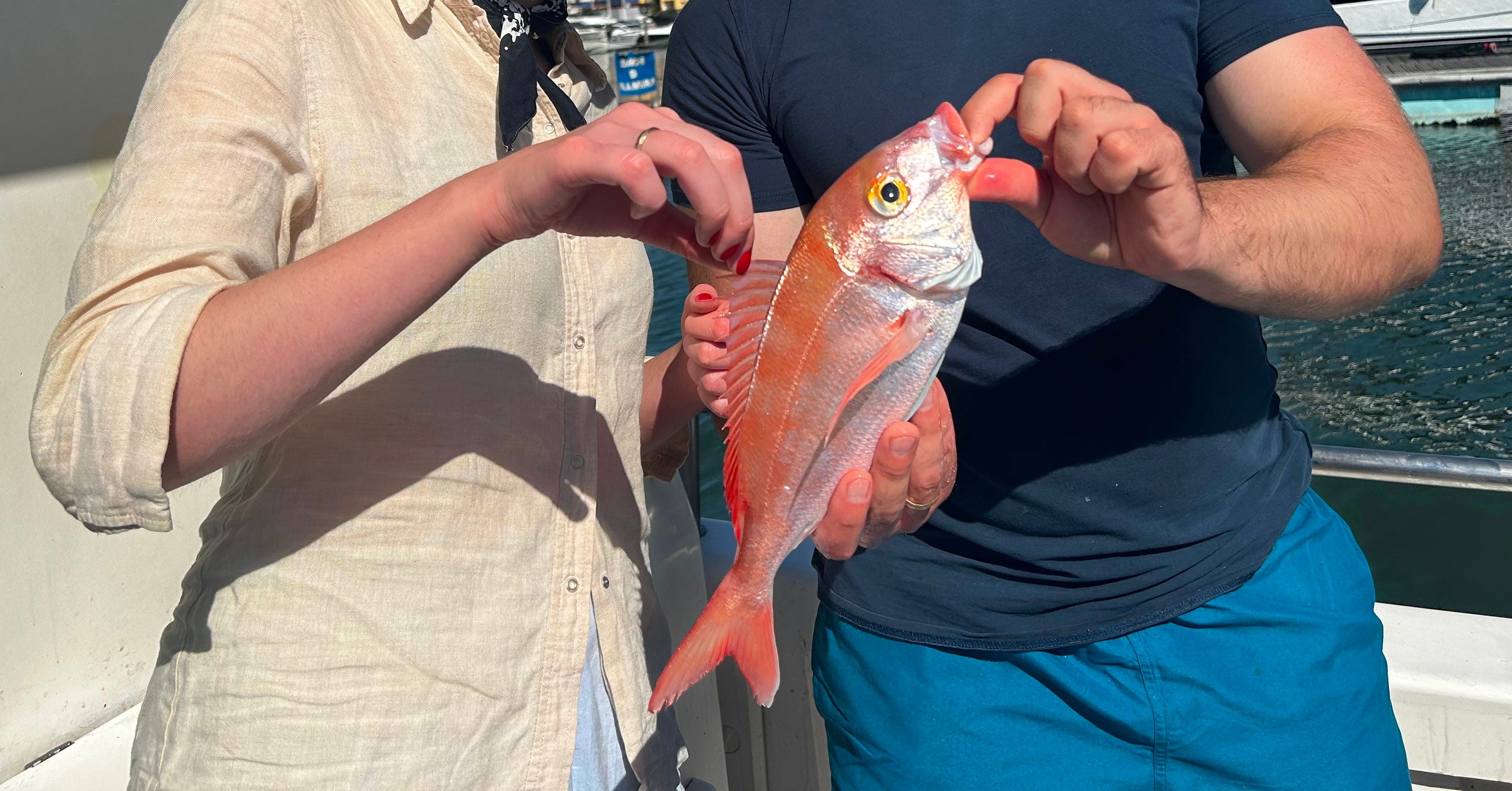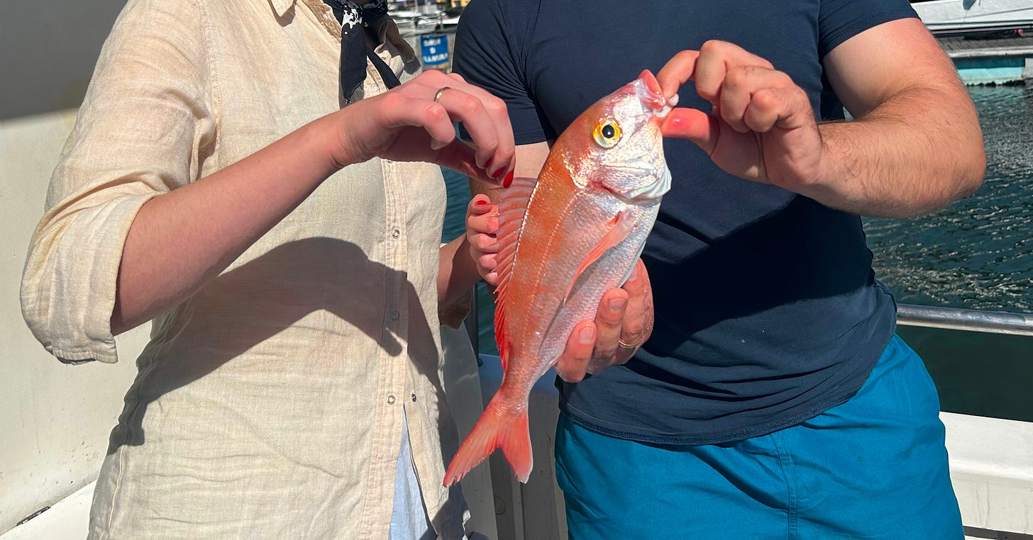 Tačiau grįžkime į žvejybinį motorinį laivelį, jau nuskriejusį reikiamą jūrmylių skaičių iki rifo, ir nenumaldomai gresiančią žvejybos pradžią. Likę turistai visi buvo vyrai — kažkokie barzdočiai skandinavai, britas ir jo dvynukai, Matas ir aš. Tiesa, ten dirbo viena moteris, tačiau jį buvo portugalė ir aiškiai neturėjo jokių problemų su žuvų lietimu, tad supratau, kad reiks nugurkti savo baimę ir nuotykio dėlei apsimesti, kad man taip pat šioje vietoje nėra visišksi jokių problemų. Ir durnam aišku, kad bijai vilko — į mišką neik, bet o tačiau, pamaniau, negali visą gyvenimą užsiimti tik baime ir drebėjimu. Beje, abu dalykai ištiko mane vieną po kitos traukiant žuveles iš tamsios vandenyno burnos, nepadėjo ir vyro pasakojimai, kad teoriškai gali nenorom pagauti ir ryklį, jei jis kaip tik ris žuvį, kurią kerti. Prie šio spielbergiško siaubo dar prisidėjo ir nežinios faktorius — keikiau save, kad niekaip nevaliojau baigti „Senio ir jūros“, nes vis užmigdavau skaitydama apie begalinį senio galynėjimasi su mistine jūrų pabaisa, tačiau viduje visuomet jaučiau, kad tam seniui baigiasi liūdnai. Traukdama vienas po kito tuos žuveliokus ir mirkydama vandenyne savo meškerę jaučiausi keistai, bet žvejyba man vis dėlto patiko. Susikaupusi laukiau, kol kas nors timptels valą kitame gale — ir sukdama valą su smalsumu ir baime žiūrėjau į mėlyną vandenį, beribę paslaptį ir nebylią dykumą, su baime įsivaizduodama, kas iš jo išlįs. Laimikiui vis artėjant ir sunkėjant, mano fantazija tolydžio įsišėldavo ir širdis nusirisdavo į kulnus, persigandusi biblinės jūržuvės su dideliausiais nasrais, kuri tuojau iškils iš vandens. Sykiu ir nusivildavau, jei laimikis nuo kabliuko nusprūsdavo ir dingdavo gelmėje, mat smalsumas vis dėlto viršijo baimę. Pačiu paskutiniu kirtimu pagavau didžiąją žuvį — jau turėjau poros valandų patirtį ir sukdama valą supratau, kad iš gelmės traukiu sunkesnį padarą. Iš vandens lėtai išniro raudoni žvynai ir mėsinga žuvis, o aš pajutau tą keistą laimę pagauti didelį laimikį. Tądien iš visos vyriškos įgulos didžioji žuvis užkibo man — gal ji kažkur giliai vandenyne pajuto, kad man reikia trupinėlio sėkmės ir pati pas mane atplaukė. Laimei, karibinio rifešerio man liesti nereikėjo, nes iš vandens jį su tinklu išgraibyti suskubo patyręs žvejybos kapitonas. Teisybės dėlei turiu pasakyti, kad priliečiau jo peleką, bet dabar gailiuosi, kad nepaėmiau palaikyti į rankas.